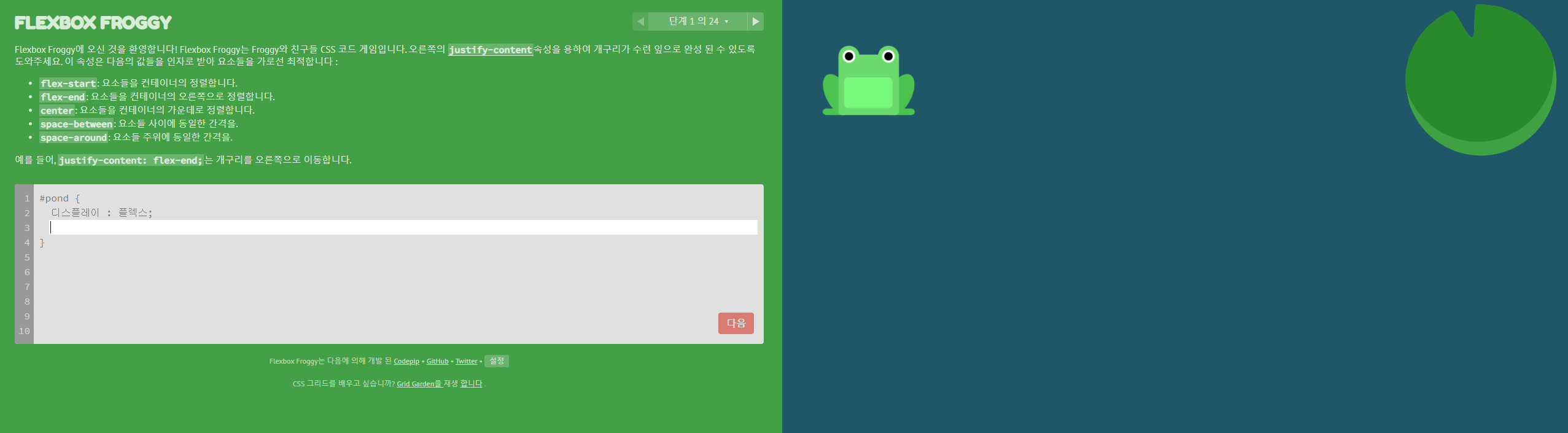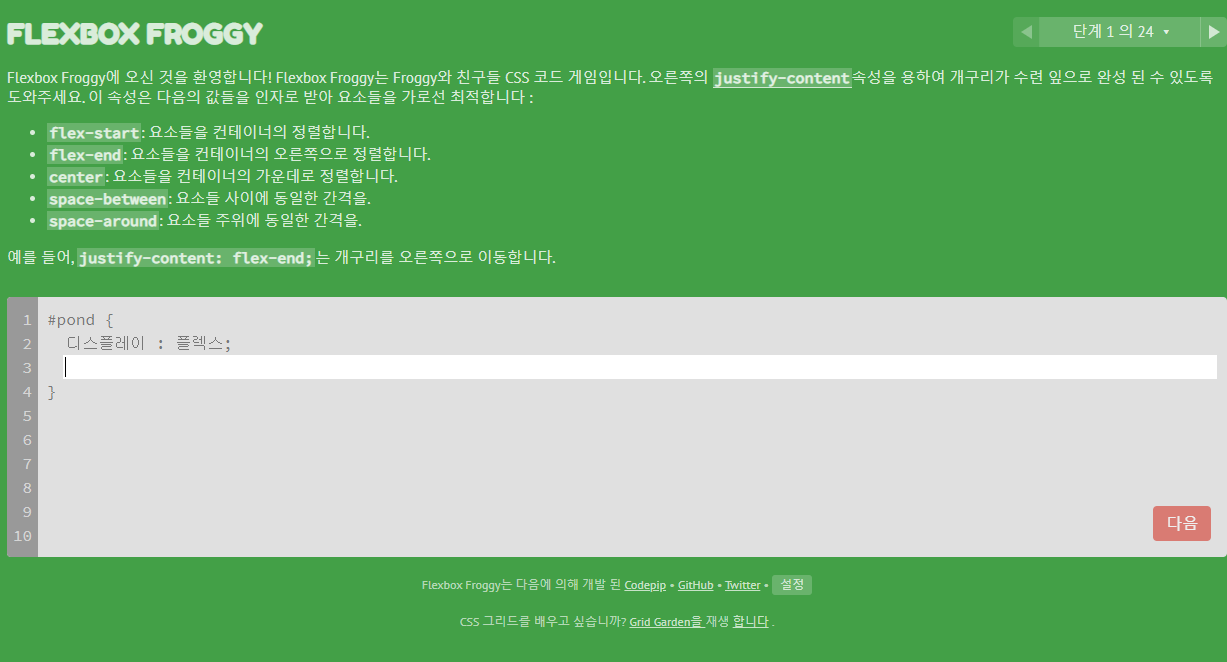 | 게임을 하면서 CSS 공부 하기 좋은 사이트 (0) | 2021.02.05 |