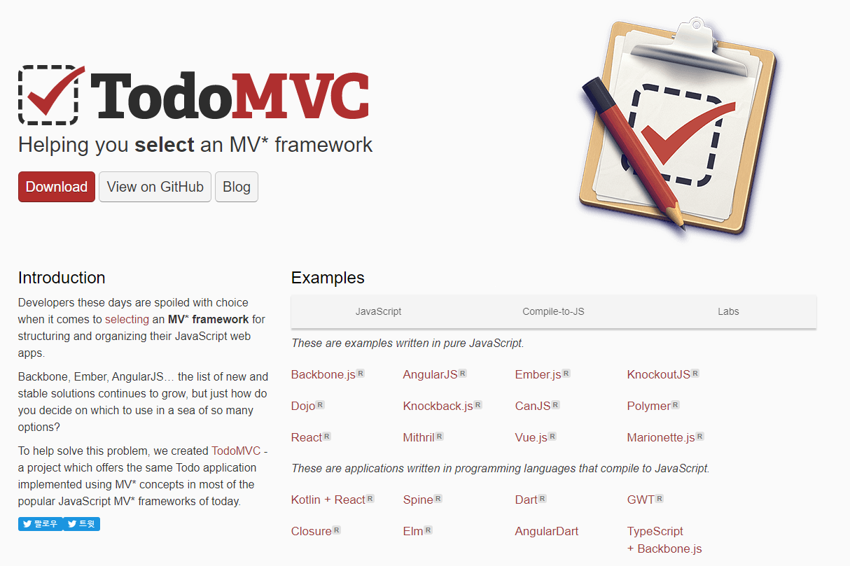 여러가지 프레임워크 차이점을 확인 하면서 공부하는 사이트이다.
