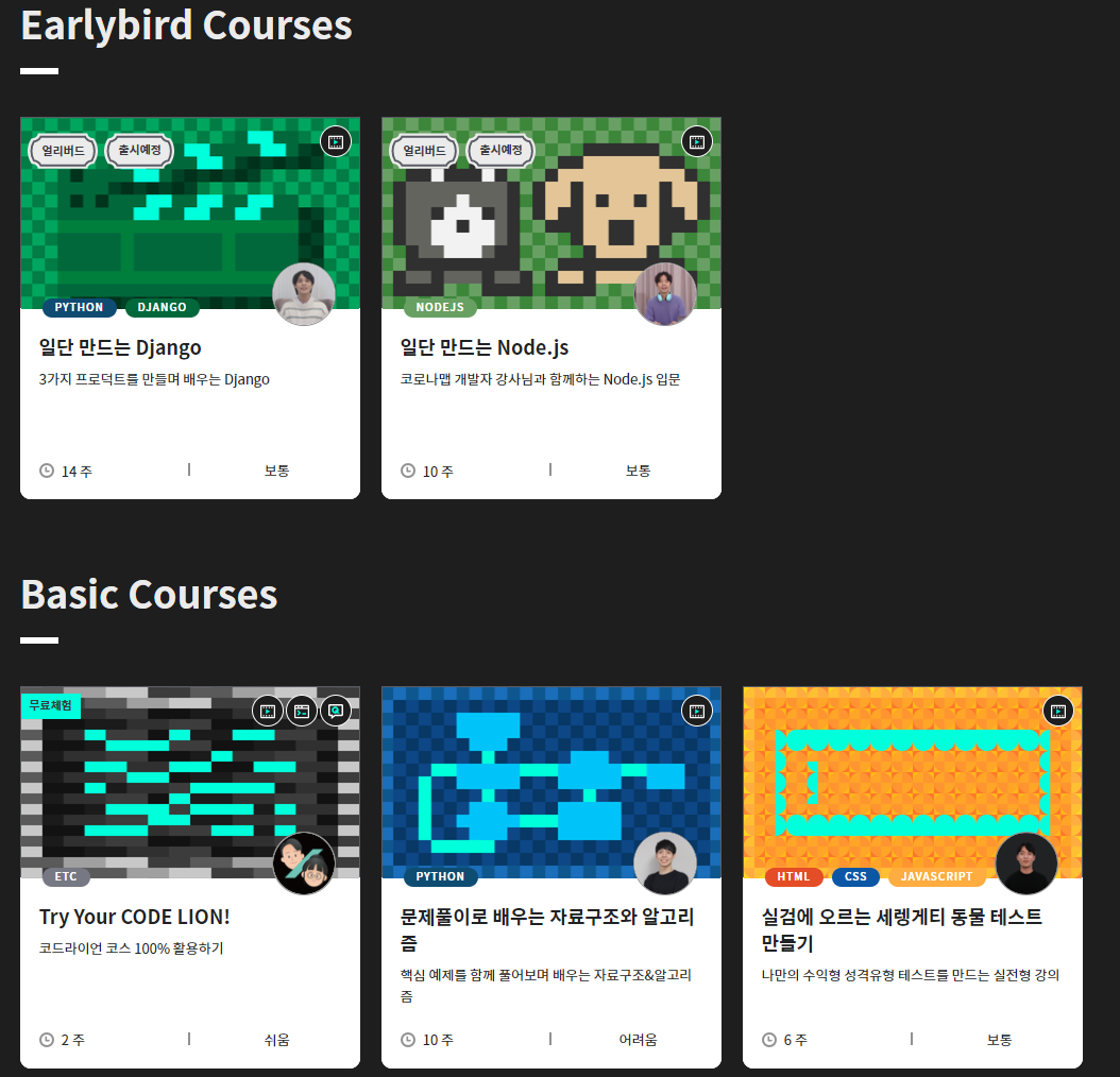 코드 라이언 사이트는 유명하신 개발자 이두희분이 만든 회사인 멋쟁이 사자처럼에서